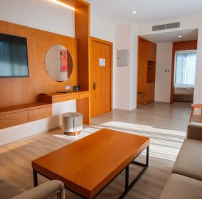 Experience the epitome of luxury and comfort in the Suit Room at CaddemmInn Hotel. This elegantly designed suite offers a spacious living area and a private balcony, allowing you to unwind and enjoy stunning views of the city. Perfect for both relaxation and productivity, the suite features modern amenities and thoughtful details to cater to all your needs. With complimentary WiFi throughout the hotel, you can stay connected effortlessly. The sophisticated decor and plush furnishings create a serene atmosphere, ensuring a restful stay. Indulge in the ultimate comfort and elegance of the Suit Room at CaddemmInn Hotel, where every moment is crafted to perfection.